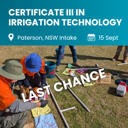 - Certificate III in Irrigation Technology | Paterson, NSW | Commences 15 September NSW FUNDING AVAILABLE